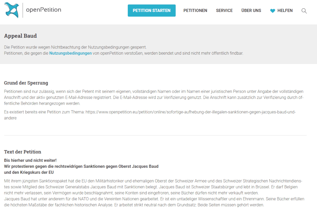 weil es sie doppelt gab. Der korrekte Link lautet: https://www.openpetition.eu/petition/online/sofortige-aufhebung-der-illegalen-sanktionen-gegen-jacques-baud-und-andere