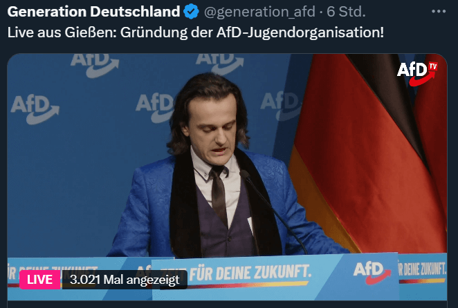 Live aus Gießen: Gründung der AfD-Jugendorganisation! https://t.co/JVyj7hbWKl